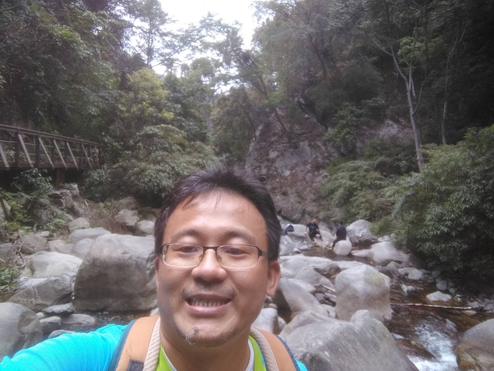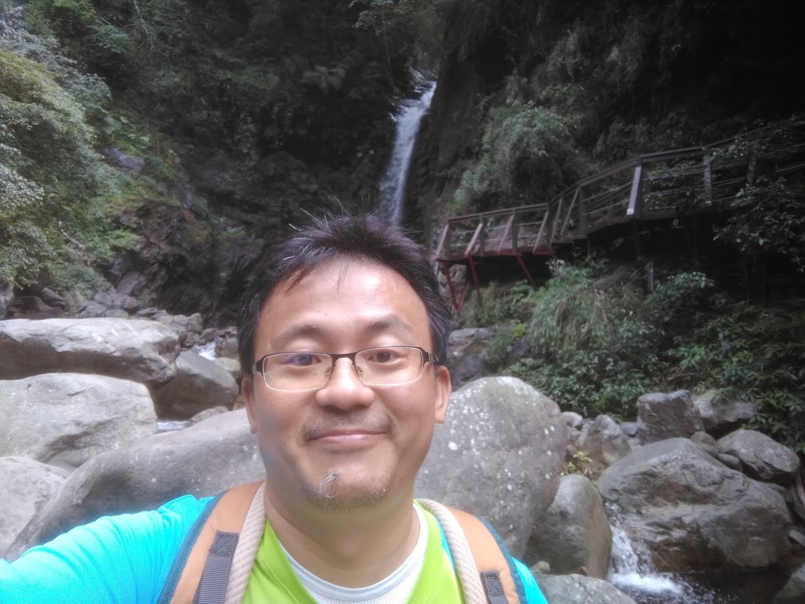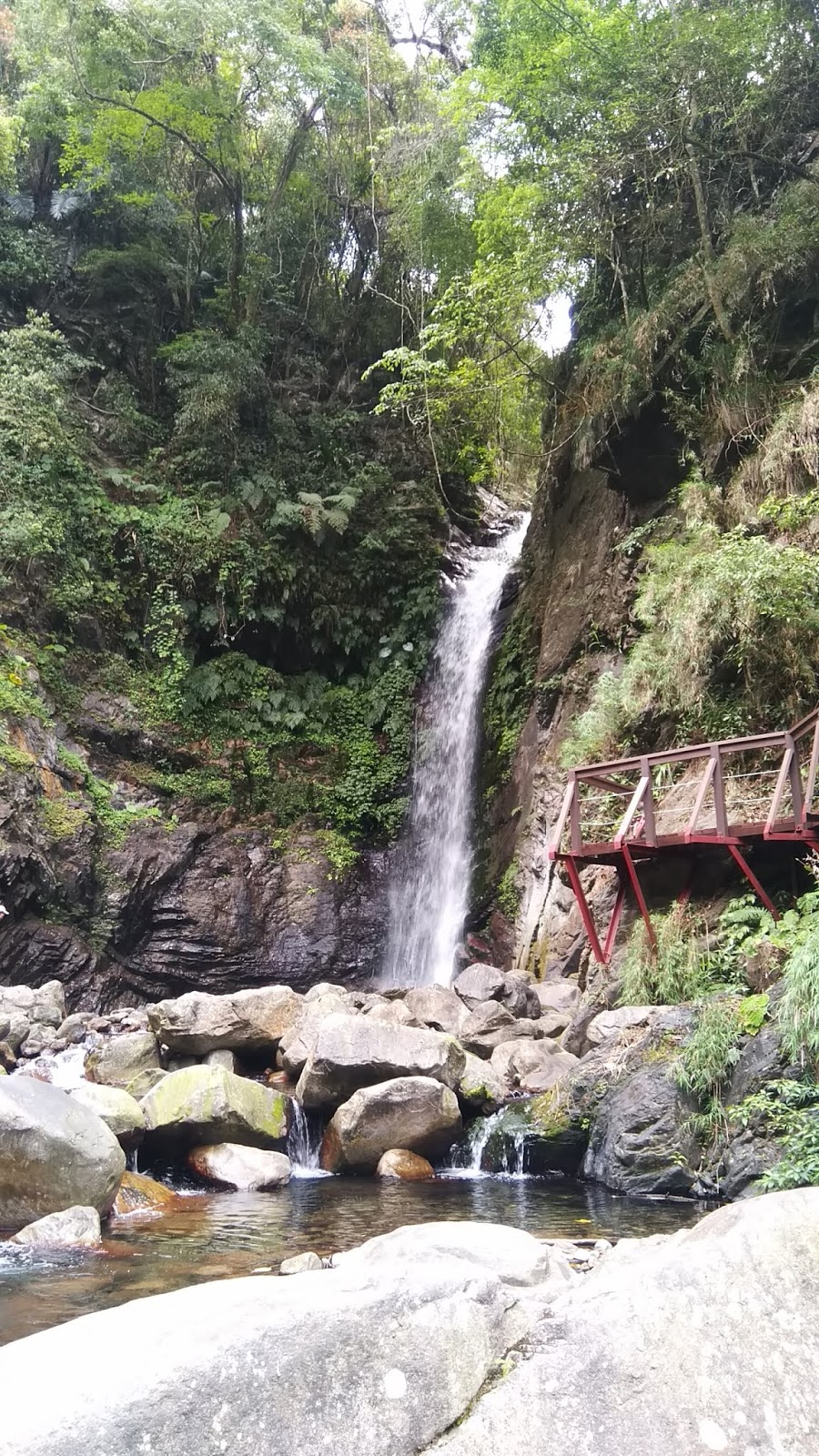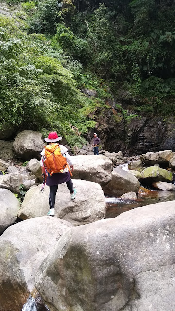 下山走了快六公里到山谷的瀑布很近沒什麼涉水就到瀑布口