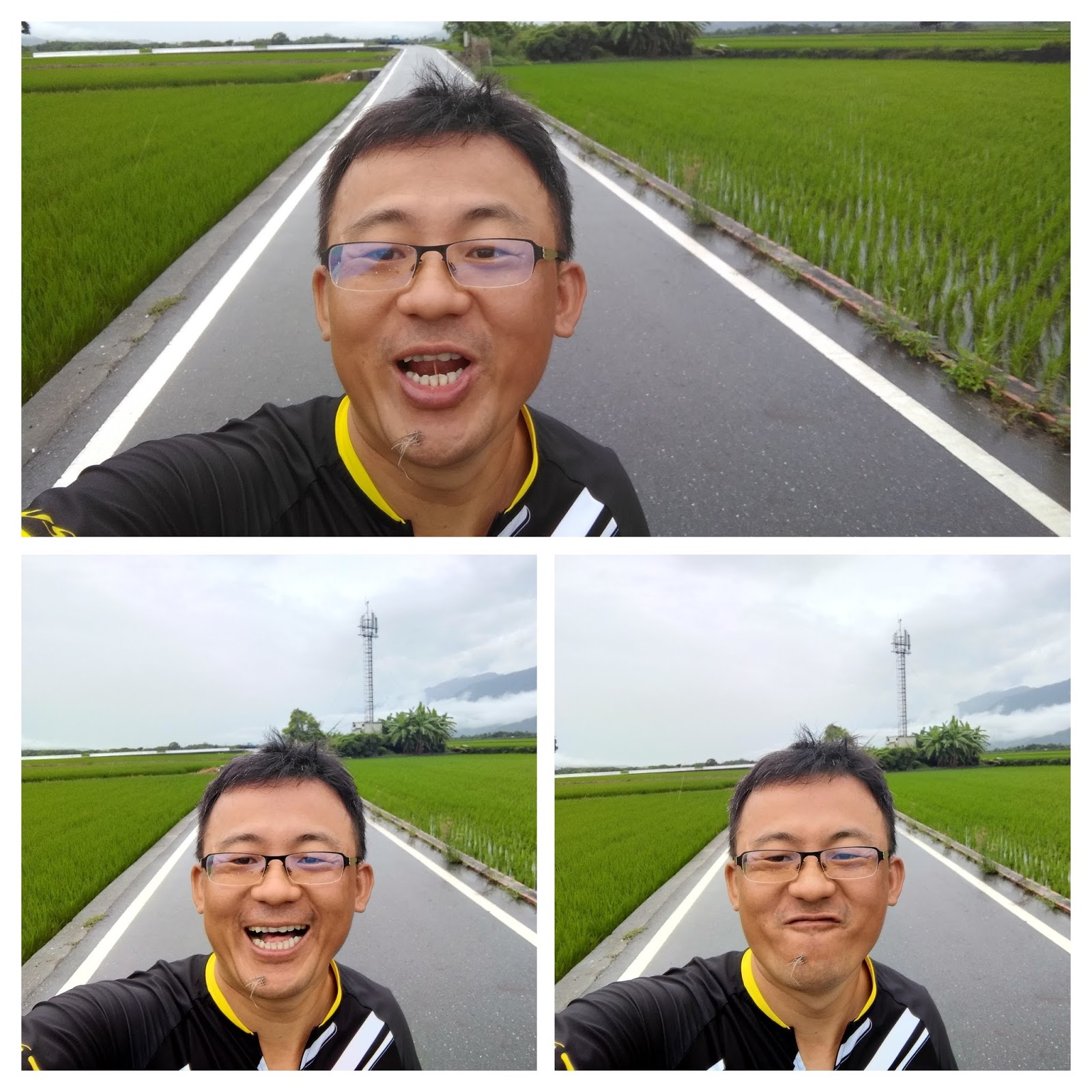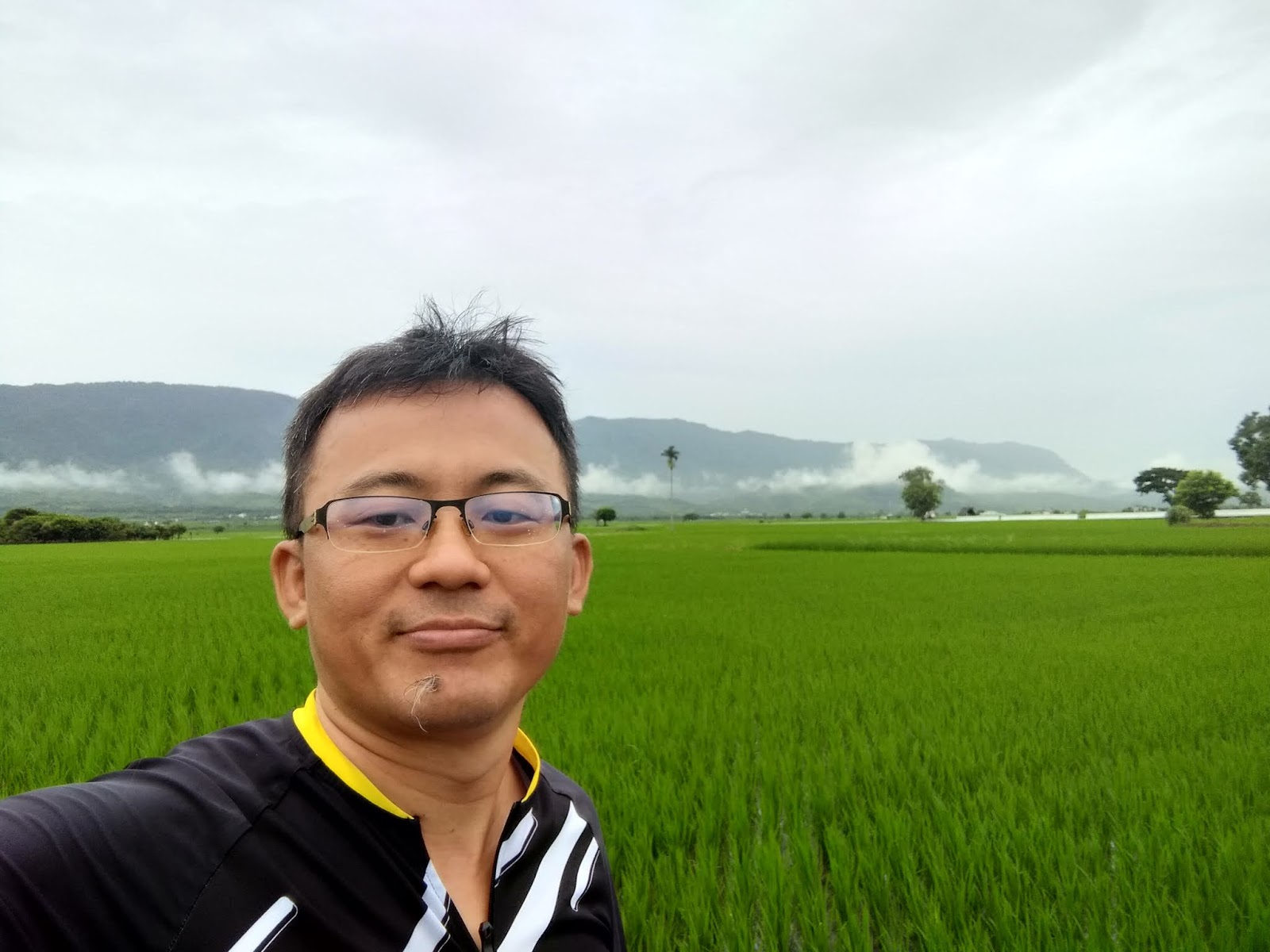 剛好雨變小跟稻田合拍 |