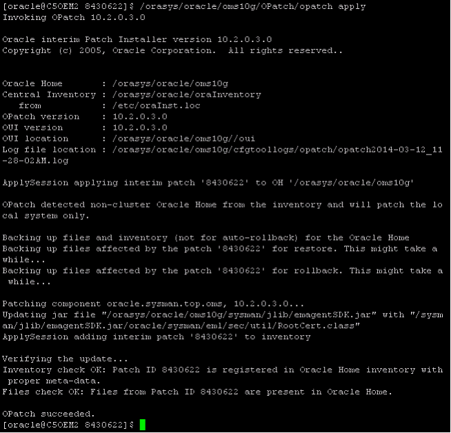 [oracle@C5OEM2 8430622]$ /orasys/oracle/oms10g/bin/emctl stop oms