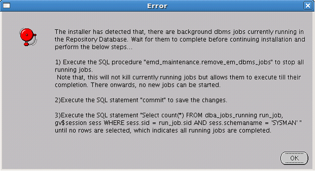 Error 4:emd_maintenance.remove_em_dbms_jobs Error